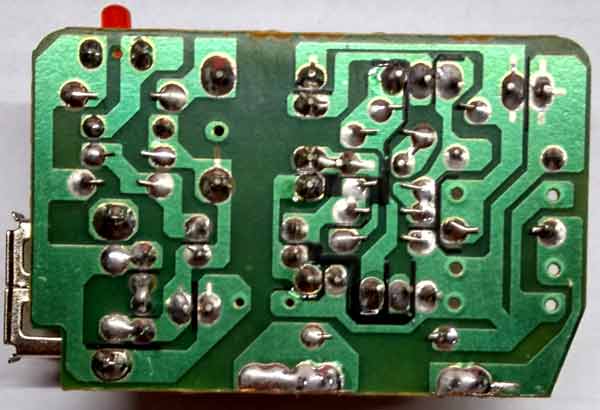 仔细检查线路板安装无误后,要通电试板时,可以在PCB板直接焊一个220V插头线,为了安全起见,请大家先在电源串联一个10W的白炽灯泡,以防止短路或者接错,千万注意安全,还有,元件一不小心就烧坏了,烧坏了需要再买才行。如果安装无误,用万用表可以测得USB 1脚和4脚应有5V的电压输出,电源指示灯亮,确认电路板装配无误。