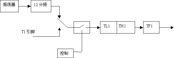 那么提供组定时器的是计数源是什么呢?看图1,原来就是由单片机的晶振经过12分频后获得的一个脉冲源。晶振的频率当然很准,所以这个计数脉冲的时间间隔也很准。问题:一个12M的晶振,它提供给计数器的脉冲时间间隔是多少呢?当然这很容易,就是12M/12等于1M,也就是1个微秒。