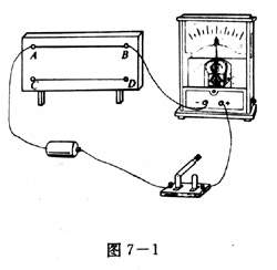 图7-1所示将长1米、横截面积为1毫米2的锰铜线AB连入电路,闭合开关,观察电流表的示数;用同样长度和模截面积的镍铬合金线CD代替AB,再接通电源,观察电流表的示数.比较这两次的电流值.电阻的大小和单位从上述实验看到,在相同的电压下,通过猛铜线的电流,比通过镍铬合金线的电流大.
